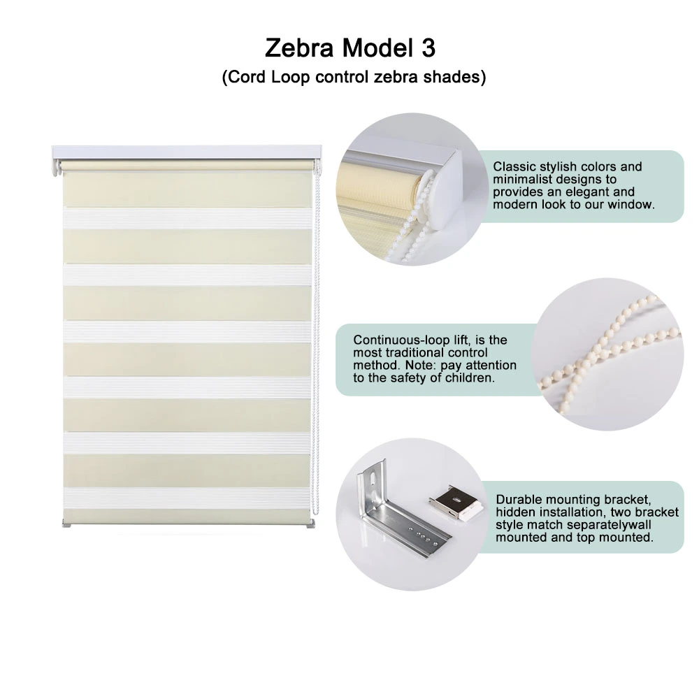 Zebra Model 1   (28/38 Cord Loop control zebra shades with cover)